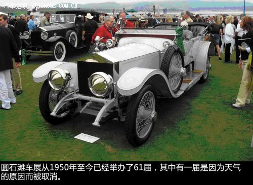 ??? 第二次的圓石灘車展是在1951年5月27日舉辦,當時只有23輛車參展。接下來幾十年中,除了1960年,因為天氣惡劣的原因取消車展;以及1963到1965年間長期大雨磅礴導致了參展草地損壞不可用,車展地點出現(xiàn)一些變動外,圓石灘車展一直舉辦的都非常順利,并且由于其參展車型都是價值連城的古董老爺車及未來的概念車,所以它還獲得了“全球最豪華的汽車展”稱號。