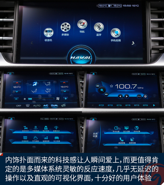 如果說外觀給了你第一重驚喜,那么內(nèi)飾的設(shè)計一定超乎了你對自主品牌的認(rèn)知,至少我認(rèn)為,全新哈弗H6上的這套內(nèi)飾,在設(shè)計上已經(jīng)超越了很多合資品牌。撲面而來的科技感讓人瞬間愛上,而更值得肯定的是這套多媒體系統(tǒng)靈敏的反應(yīng)速度,幾乎無延遲的操作以及直觀的可視化界面,都帶來十分好的用戶體驗(yàn)。