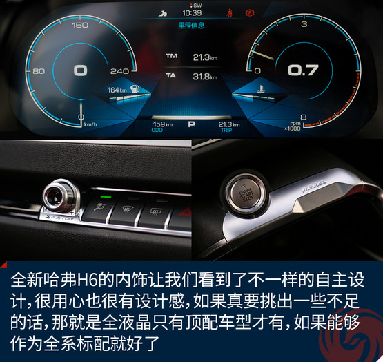 一切以駕駛員為中心的設(shè)計理念值得肯定,微微朝向駕駛員的中控設(shè)計,全新的電子換擋桿以及多媒體控制旋鈕都給我留下了很深的印象,當(dāng)然了全景天窗進(jìn)一步增加了車內(nèi)空間的開揚(yáng)感,全新設(shè)計的四幅方向盤的握感厚實(shí),多功能按鍵功能也十分齊備??傊?,全新哈弗H6的內(nèi)飾讓我們看到了不一樣的自主設(shè)計,很用心也很有設(shè)計感,沒有了雜亂無章,相反,這樣的設(shè)計會讓人很愿意和汽車獨(dú)處,如果真要挑出一些不足的話,那就是全液晶只有頂配車型才有,如果能夠作為全系標(biāo)配就好了。