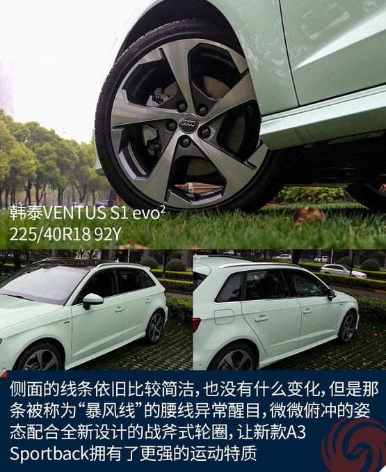 側(cè)面的線條依舊比較簡(jiǎn)潔,也沒有什么變化,但是那條被稱為“暴風(fēng)線”的腰線異常醒目,微微俯沖的姿態(tài)配合全新設(shè)計(jì)的戰(zhàn)斧式輪圈,讓新款A(yù)3 Sportback擁有了更強(qiáng)的運(yùn)動(dòng)特質(zhì)。