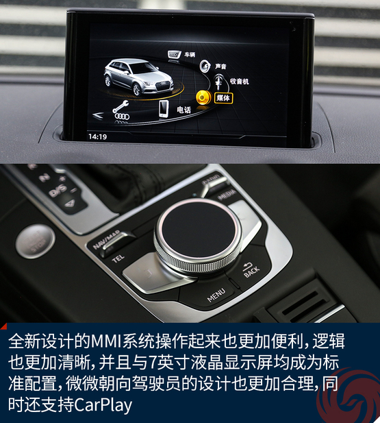 相比較外觀的改變,內(nèi)飾的變化就要少了一些,最直觀的變化莫過(guò)于全新設(shè)計(jì)的真皮方向盤,不僅好看也十分的好用,發(fā)光的迎賓踏板進(jìn)一步增加了車輛的高級(jí)感,中控面板上的鋁合金材質(zhì)的裝飾條質(zhì)感出色,不僅如此,還有多種樣式和材質(zhì)可選;而門板內(nèi)的Alcantara材質(zhì)進(jìn)一步提升了舒適的觸感,當(dāng)然座椅也同樣采用了Alcantara。另外新增加的USB接口也進(jìn)一步增加了行車的便利性,這也讓A3車內(nèi)的USB數(shù)量增加到兩個(gè)。同時(shí),全新設(shè)計(jì)的MMI系統(tǒng)操作起來(lái)也更加便利,邏輯也更加清晰,并且與7英寸液晶顯示屏均成為標(biāo)準(zhǔn)配置,微微朝向駕駛員的設(shè)計(jì)也更加合理,同時(shí)還支持CarPlay。