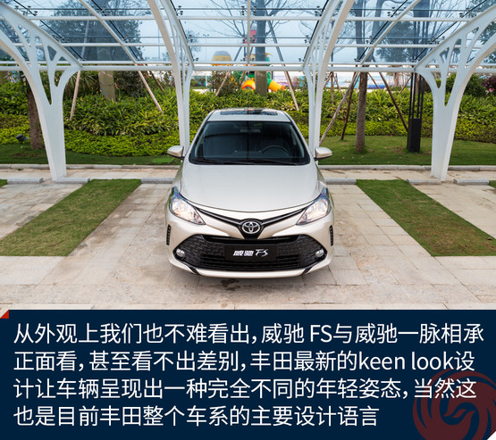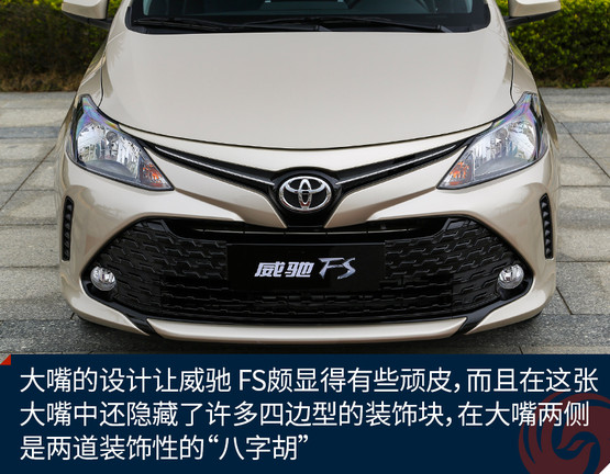 從外觀上我們也不難看出,威馳 FS與威馳一脈相承,正面看,甚至看不出兩車的差別,豐田最新的keen look設(shè)計(jì)讓車輛呈現(xiàn)出一種完全不同的年輕姿態(tài),當(dāng)然這也是目前豐田整個(gè)車系的主要設(shè)計(jì)語言,就是要讓車輛更顯年輕運(yùn)動(dòng)。大嘴的設(shè)計(jì)讓威馳 FS頗顯得有些頑皮,而且在這張大嘴中還隱藏了許多四邊型的裝飾塊,在大嘴兩側(cè)是兩道裝飾性的“八字胡”,除此之外是一雙大大的眼睛,這一副調(diào)皮可愛的模樣,相信不少年輕人都會(huì)喜歡。