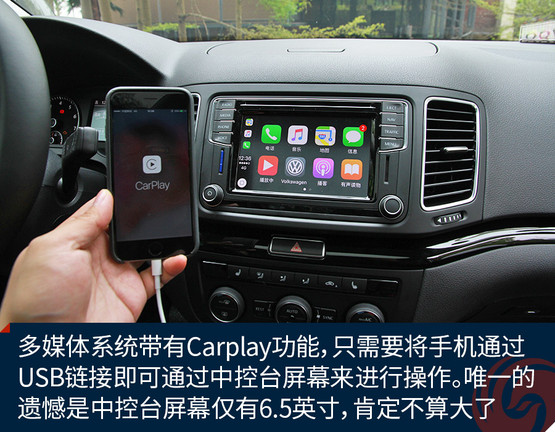 內(nèi)飾方面,夏朗仍然傳承著大眾品牌的經(jīng)典設(shè)計(jì)風(fēng)格,基本不用分辨就知道這是一款大眾汽車。中央的多媒體系統(tǒng)功能豐富,并且?guī)в蠧arplay功能,只需要將手機(jī)通過USB鏈接即可通過中控臺屏幕來進(jìn)行操作。唯一的遺憾是,夏朗的中控臺屏幕僅有6.5英寸,在現(xiàn)在看來肯定不算大了。