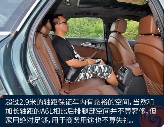 ????????作為中大型豪華車衍生的旅行轎車,A6 Avant提供了充足的乘坐空間,當(dāng)然后排不會像加長軸距的A6L那么奢侈,不過作為商務(wù)接待并不嫌失禮。身高180cm的人在后排足夠舒適,加上旅行車車頂輪廓高挑,后排乘客頭部空間還優(yōu)于三廂轎車。