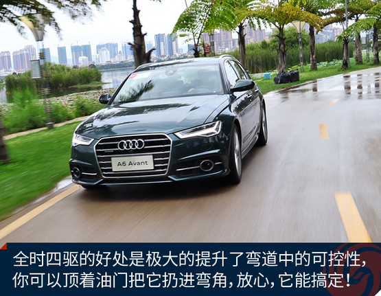 ????????作為原裝進(jìn)口車,奧迪A6 Avant的底盤懸掛設(shè)定不像國產(chǎn)奧迪A6L那種偏向關(guān)照后排的VIP,再加上標(biāo)配運(yùn)動型懸掛縮減了懸掛行程,A6 Avant旅行車開起來明顯比A6L來的犀利和動感,我并不是說它像RS 6 Avant那樣有種讓人上癮而無法自拔的“毒力”,但作為一臺有著濃郁個人主義色彩又需要兼顧全家使用的車型,奧迪A6 Avant是那種該穩(wěn)就穩(wěn),要快也能快的理想設(shè)定。