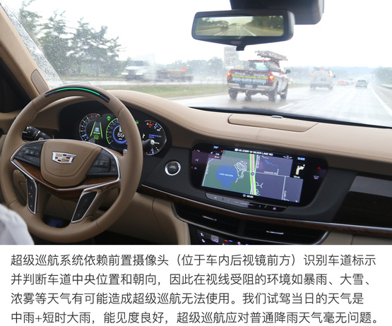 ????????超級(jí)巡航系統(tǒng)通過GPS定位的高精度地圖和車載攝像機(jī)定位和識(shí)別行駛路徑并判斷車輛所在的車道,所以遇到暴雨、大霧或沙塵等影響攝像頭工作的天氣,或者駛?cè)胨淼雷钄郍PS信號(hào)的時(shí)候,超級(jí)巡航系統(tǒng)的使用可能受到影響。雖然這些突發(fā)狀況可能會(huì)導(dǎo)致超級(jí)巡航功能在行駛中突然推出,但不必?fù)?dān)心安全問題,系統(tǒng)會(huì)及時(shí)提示駕駛者接管汽車,其邏輯與駕駛者“失能”的提醒流程幾乎相同,駕駛員有從容的時(shí)間反應(yīng)并接管汽車。