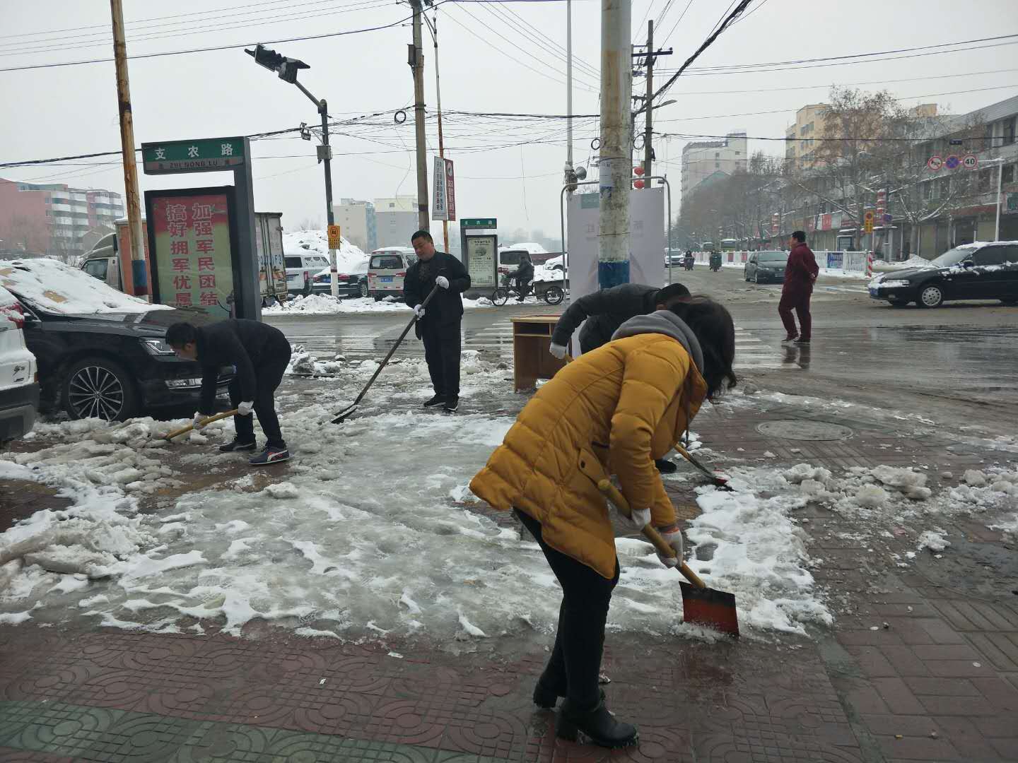 全城干群集結,合力除冰雪,條條大道變通衢。脫去銀裝素裹,小城換新裝,全城彩繪進行時。