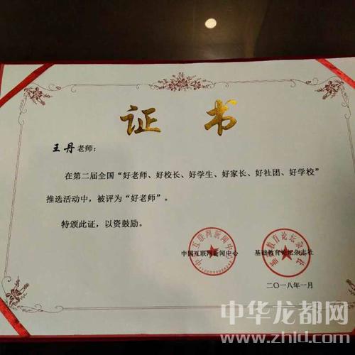 中華龍都網(wǎng)訊(周口報(bào)業(yè)全媒體記者 付永奇)記者昨日獲悉,近日在由中國(guó)基礎(chǔ)教育論壇雜志社和中國(guó)互聯(lián)網(wǎng)新聞中心主辦的“六好”推選活動(dòng)中,商水縣教師王丹獲得“好老師”的光榮稱號(hào),獲此殊榮的全國(guó)僅有100名教師,王丹是周口市唯一一位獲此殊榮的教師。