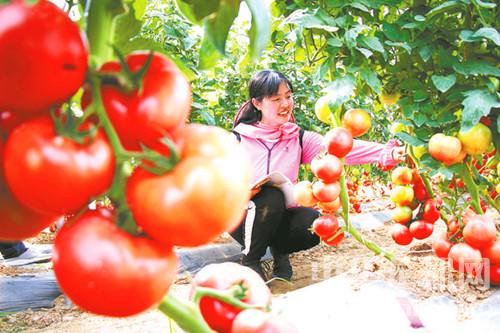 依托河南農(nóng)業(yè)大學(xué)專家團(tuán)隊,扶溝縣蔬菜研究院研發(fā)出400多個番茄新品種,通過集中展示讓種植戶優(yōu)中選優(yōu),并實施對貧困戶購買種苗優(yōu)惠50%、特困戶免費供應(yīng)的優(yōu)惠政策,帶動206戶貧困戶實現(xiàn)脫貧。圖為工作人員在記錄番茄新品種的試驗數(shù)據(jù)。谷志方 攝