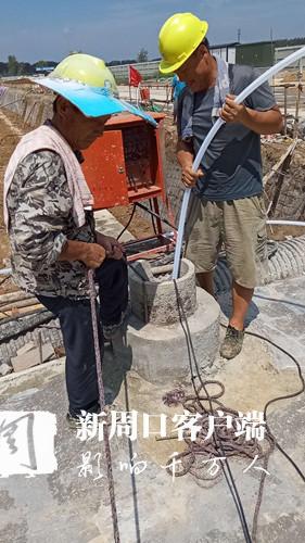 賈魯嘉苑項(xiàng)目L地塊施工現(xiàn)場,建筑工人正在對(duì)降水井進(jìn)行抽水