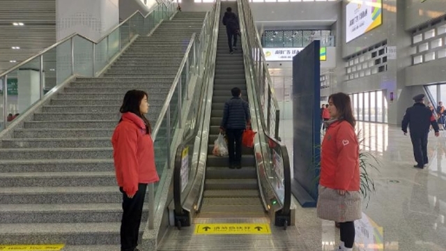 12月1日早上6:30,當大多數(shù)人還沉浸在夢鄉(xiāng)里,志愿者柯曉艷和同學已經(jīng)站在周口東站的售票廳,為即將乘坐高鐵出行的乘客做指引。