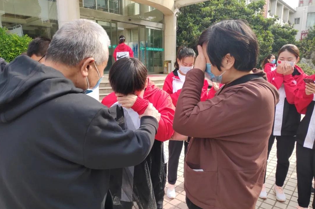儀式結(jié)束后,醫(yī)療隊隊員和家人、同事相擁相抱,現(xiàn)場一片沸騰……終于見到了思念已久的家人。