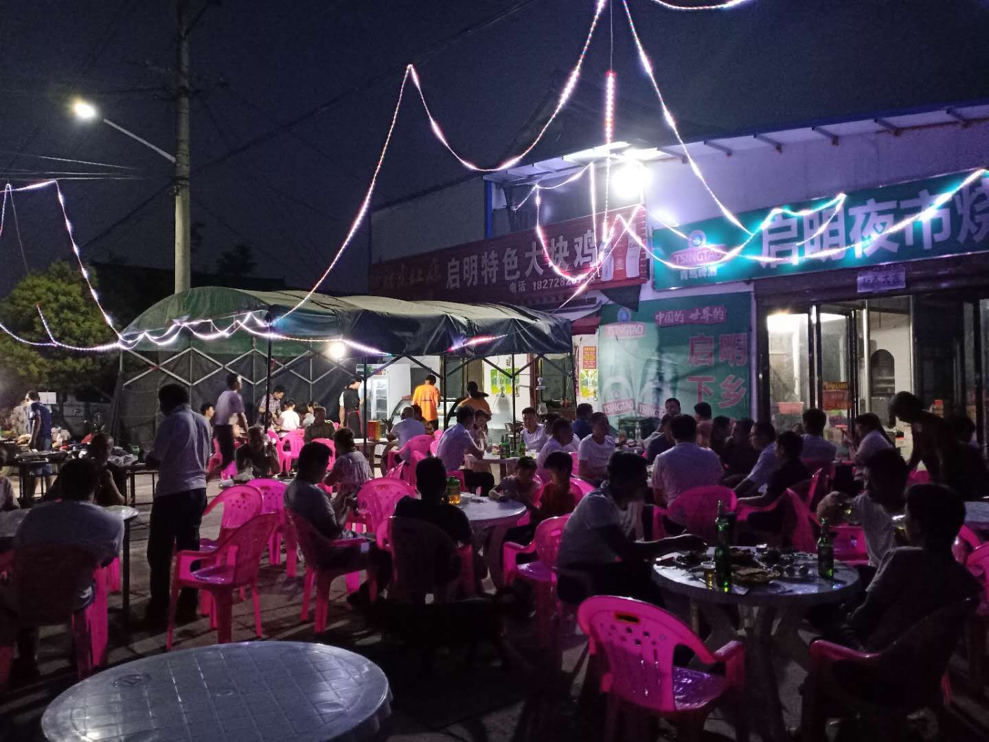 在這里,村民可以吃到各種特色美食:烤魷魚、烤肉串、烤魚丸、烤面筋、涮毛肚、烤冷面、臭豆腐……顧客們吃得高興,攤主們也忙得不亦樂乎。