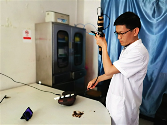 周口市婦幼保健院南院區(qū)負(fù)責(zé)人付玉圓說:徐醫(yī)生從2016年就開始進(jìn)修學(xué)習(xí)呼吸內(nèi)鏡操作,先后去過鄭大三附院、吉林大學(xué)第一附屬醫(yī)院進(jìn)修。回來后,為了練習(xí)手感和操作技術(shù),就自己弄材料,自制了簡易的模擬呼吸內(nèi)鏡用來練手。只要一有時(shí)間,就練習(xí)內(nèi)鏡操作。