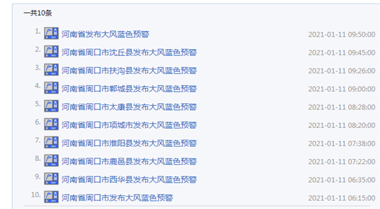 周口發(fā)布藍色大風天氣預警
