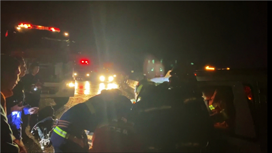2月21日19時(shí)許,大廣高速周口段2064KM附近發(fā)生一起交通事故,大貨車沖破護(hù)欄與對(duì)向車道內(nèi)的兩輛私家車發(fā)生碰撞,司機(jī)和一名5歲女童被困車中。接到報(bào)警后,民警、消防、醫(yī)護(hù)人員迅速趕到現(xiàn)場(chǎng)開(kāi)展救援,20時(shí)39分兩人被救出并接受進(jìn)一步治療。