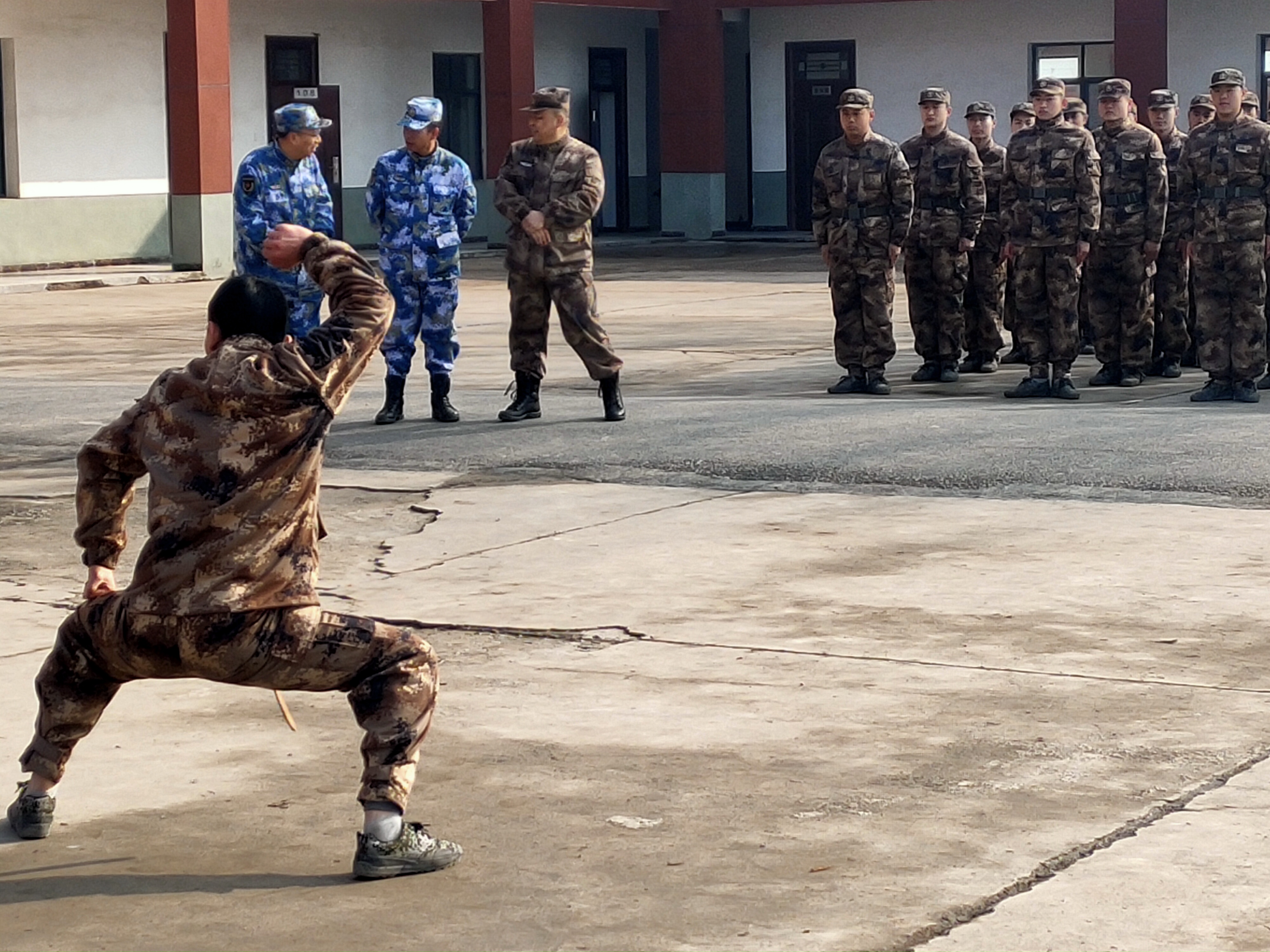 “報告首長,我叫趙三朋,畢業(yè)于武漢體育學(xué)院,武術(shù)套路、散打和兵器專業(yè)。”在戰(zhàn)友們的歡呼聲中,趙三朋主動請纓表演了一套傳統(tǒng)武術(shù)套路,只見他一招一式行云流水、虎虎生威 ,前后空翻嫻熟到位、收放自如,迎得戰(zhàn)友們陣陣喝彩聲,湯維政也禁不住連聲稱贊。
