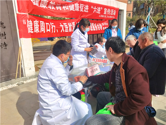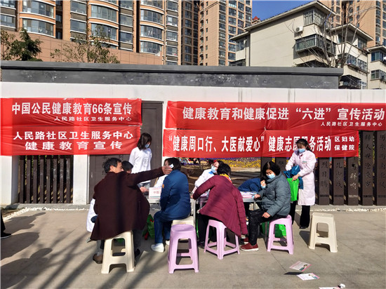 3月2日下午,在大慶路與七一路交叉口東北角的街頭游園內(nèi),人民路社區(qū)衛(wèi)生服務(wù)中心在這里開(kāi)展健康教育和健康促進(jìn)“六進(jìn)”宣傳活動(dòng)。活動(dòng)現(xiàn)場(chǎng),量血壓、測(cè)血糖、免費(fèi)體檢等服務(wù),讓周邊居民體會(huì)到滿(mǎn)滿(mǎn)的關(guān)懷。