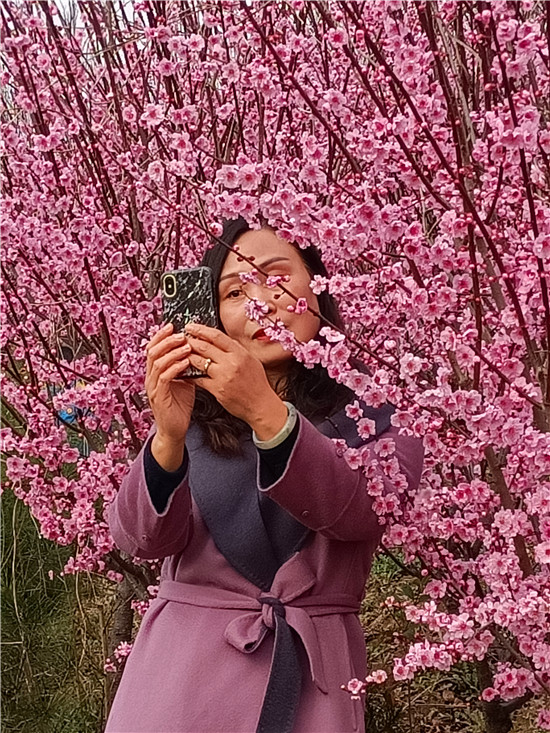 “哇!這些梅花好美呀!”“特別香!”當日下午,接受梅樹捐贈儀式的幾名老師和學生代表剛走進梅園,就被園里各式各樣的梅樹所吸引,迫不及待的觀賞拍照。在幾株骨紅梅前,李萌向老師講解了不同品種梅樹的管理知識以及生長習性和花期。