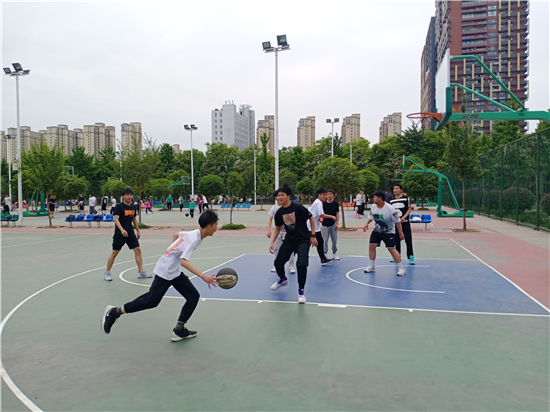 5月2日,記者在周口市體育中心籃球場(chǎng)地看到,市民們?cè)诩偃绽镞M(jìn)行體育鍛煉的熱情不減,他們紛紛來(lái)到籃球場(chǎng)打起了籃球,既鍛煉了身體,又度過(guò)了一個(gè)有意義的假期。②9