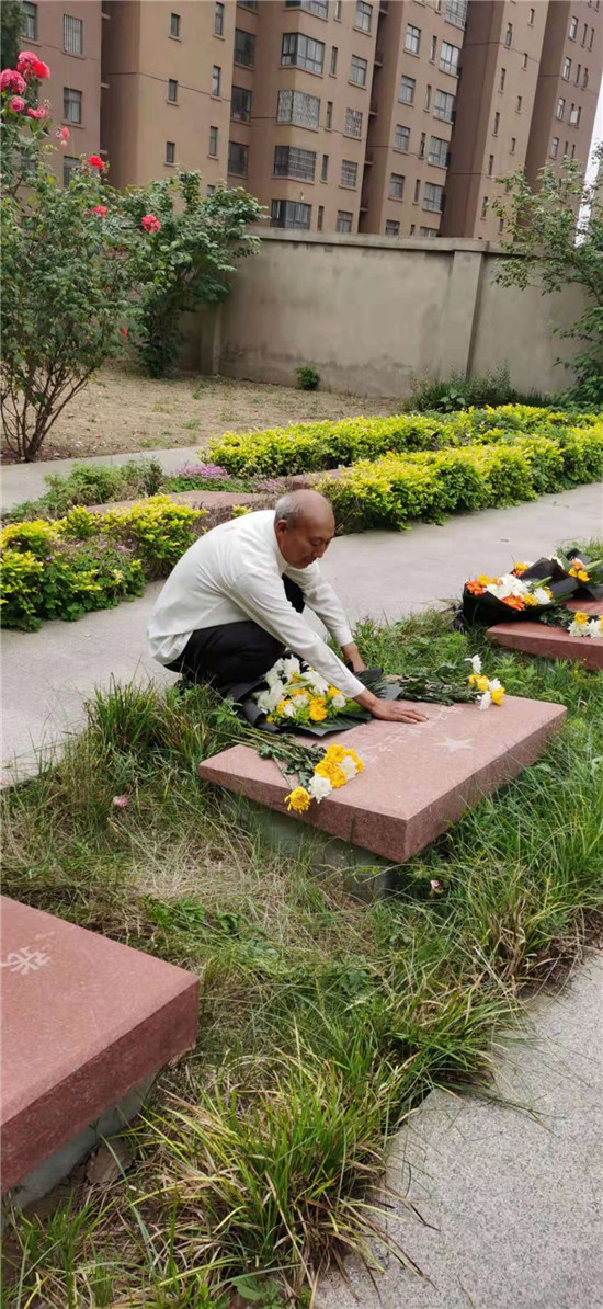 一束束潔白的花朵,寄托著對(duì)烈士的哀思,一滴滴滾燙的熱淚,表達(dá)著對(duì)親人的牽掛。5月12日,西華縣退役軍人事務(wù)局、東王營鄉(xiāng)有關(guān)人員和薛景洪一起前往開封市尉氏縣烈士陵園悼念薛子明烈士。在薛子明烈士墓前,薛景洪老人眼里噙著熱淚哽咽著說:“薛老先生,薛莊村親人看您來了,我們沒有忘記您,我們一直在尋找您。”