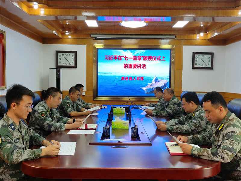 該縣人武部政委李峰首先帶領(lǐng)大家深入學(xué)習(xí)了《習(xí)近平在“七一勛章”頒授儀式上的重要講話》《河南省軍區(qū)黨委作出向王占山同志學(xué)習(xí)的決定》等文件精神,他指出,王占山同志為了黨,為了國(guó)家沖鋒在前,不怕?tīng)奚?,為我?guó)革命事業(yè)立下了赫赫戰(zhàn)功,在全民黨史教育的大背景下,我們學(xué)習(xí)功勛黨員事跡,奮進(jìn)國(guó)防動(dòng)員事業(yè),正當(dāng)其時(shí)。