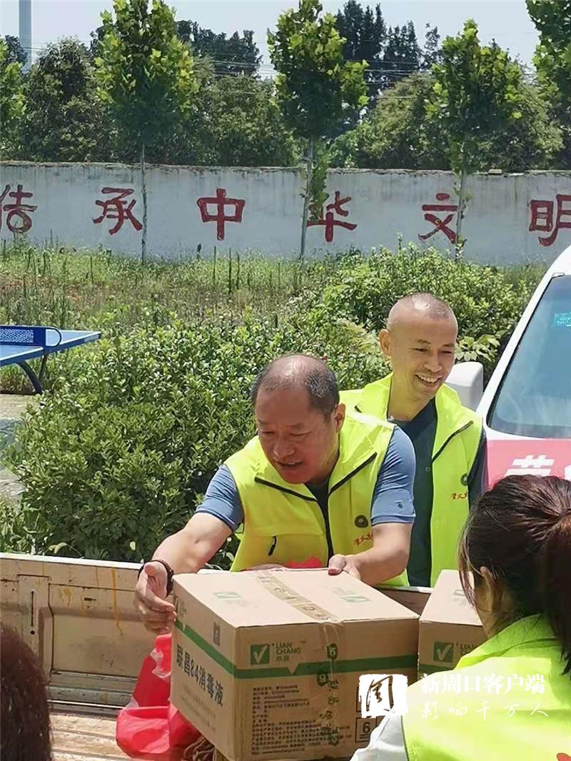 時(shí)刻關(guān)注受災(zāi)群眾動(dòng)態(tài)的周口螢火蟲公益組織得知這一情況后,于7月30日上午再次奔赴西華縣紅花鎮(zhèn),為即將返家的王橋行政村村民送去呋喃西林粉、蚊蟲叮咬液、消毒凝膠、口罩、84消毒液等價(jià)值兩萬(wàn)余元的消殺物資?!班l(xiāng)親們今天回家,這些東西正好用得著。謝謝你們!”王橋行政村村干部和富平代表村民向周口螢火蟲公益表示感謝。