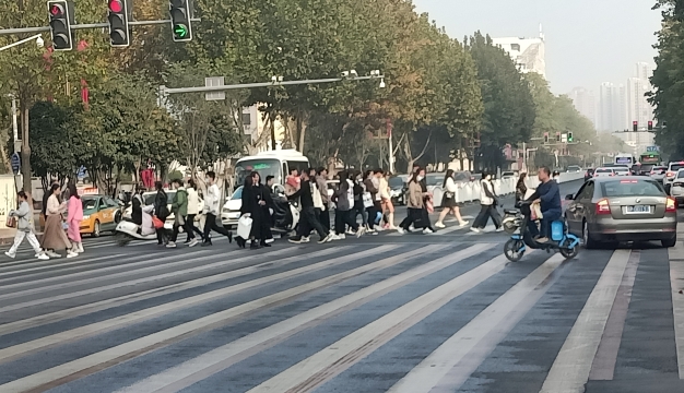 近日,在周口城鄉(xiāng)一體化示范區(qū)人和路和平安路交匯口,一群身穿印有“周口交通技師學院”字樣紅色馬甲的忙碌身影引來眾多路人注目。