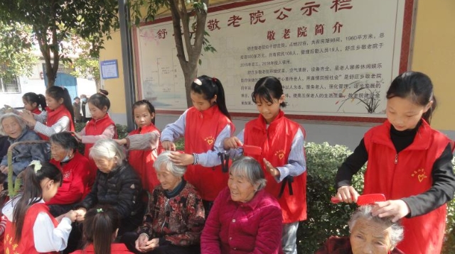 ?10月13日,商水縣舒莊鄉(xiāng)杜店小學(xué)的愛(ài)心志愿者來(lái)到舒莊鄉(xiāng)敬老院為老人們梳頭。