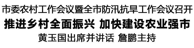 黃玉國要求,要堅(jiān)持把黨的領(lǐng)導(dǎo)貫徹到“三農(nóng)”工作、防汛抗旱工作的全過程各方面,壓緊責(zé)任鏈條,堅(jiān)持務(wù)實(shí)重干,提升能力本領(lǐng),凝聚工作合力,確保責(zé)任上肩、組織到位、措施落實(shí),不斷開創(chuàng)全市“三農(nóng)”工作新局面,打好打贏防災(zāi)減災(zāi)救災(zāi)主動(dòng)仗。