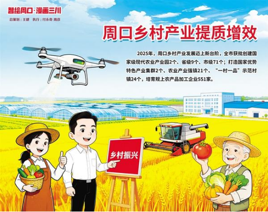 2025年,周口鄉(xiāng)村產(chǎn)業(yè)發(fā)展邁上新臺階,全市獲批創(chuàng)建國家級現(xiàn)代農(nóng)業(yè)產(chǎn)業(yè)園2個(gè)、省級9個(gè)、市級71個(gè),形成“國家級引領(lǐng)、省級支撐、市縣級補(bǔ)充”的梯次發(fā)展格局。打造國家優(yōu)勢特色產(chǎn)業(yè)集群2個(gè)、農(nóng)業(yè)產(chǎn)業(yè)強(qiáng)鎮(zhèn)21個(gè)、“一村一品”示范村鎮(zhèn)24個(gè),培育規(guī)上農(nóng)產(chǎn)品加工企業(yè)551家,形成以益海糧油、金丹乳酸、雪榮面粉為龍頭的糧食加工產(chǎn)業(yè)集群。