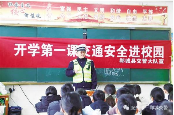 3月5日,民警為師生講解交通安全常識。當(dāng)日,鄲城縣公安局交通管理大隊(duì)宣傳小分隊(duì)走進(jìn)轄區(qū)第三實(shí)驗(yàn)小學(xué),為全校師生送上了一堂生動(dòng)有趣的交通安全“開學(xué)第一課”,切實(shí)增強(qiáng)學(xué)生的交通安全意識和自我防護(hù)能力,為校園周邊道路交通安全筑牢防線。