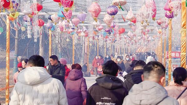 春節(jié)期間,項(xiàng)城市南頓故城景區(qū)人頭攢動(dòng),處處洋溢著喜慶的節(jié)日氣氛。圖為游客盡享美好時(shí)光。