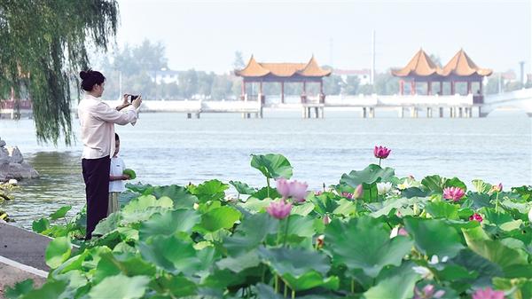 夏天的淮陽(yáng)就像一幅寫意畫卷,在清涼的湖風(fēng)吹拂下徐徐展開(kāi)。登上龍湖邊的六藝閣,遠(yuǎn)處的古城,臥波的大橋,近處的荷花,搖曳的蘆葦,仿古的碼頭,靜泊的游船,歸巢的飛鳥(niǎo)……放眼處,無(wú)不令人陶醉其間。