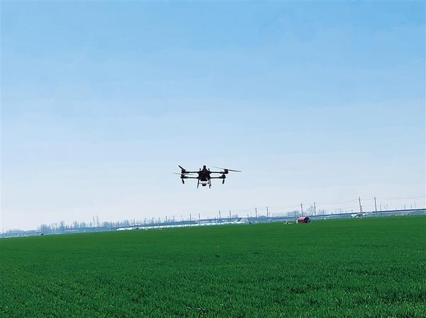 小麥春管正當(dāng)時(shí),科技賦能助力豐收。近日,黃泛區(qū)農(nóng)場(chǎng)利用無(wú)人機(jī)為小麥噴灑農(nóng)藥,大大提高了作業(yè)效率,省時(shí)省力又省心,為農(nóng)業(yè)插上了科技翅膀。