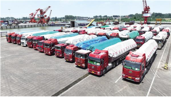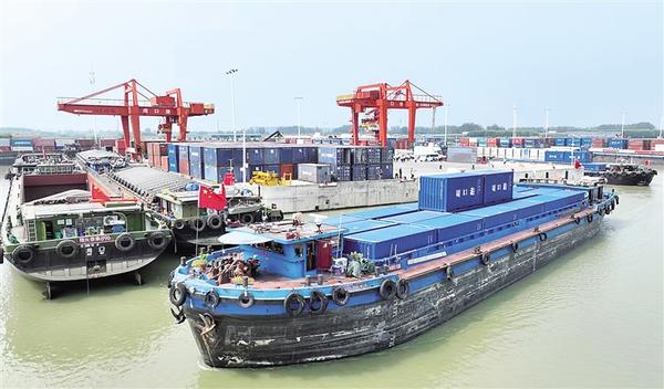 沙潁河畔,秋意正濃。一艘艘滿(mǎn)載貨物的船舶踏浪而行,駛向周口港范營(yíng)作業(yè)區(qū)。碼頭上,龍門(mén)吊高聳入云,運(yùn)輸車(chē)輛川流不息,工人們忙碌作業(yè),呈現(xiàn)出一派欣欣向榮的景象。