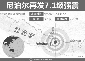 據(jù)新華社北京4月26日電 綜合新華社記者報道:25日發(fā)生在尼泊爾中部的強烈地震已經(jīng)造成尼境內(nèi)至少1805人遇難,另有4718人受傷。中國西藏、印度、孟加拉國、不丹等地均出現(xiàn)人員傷亡。中國政府正在組織緊急救援物資,將盡快運抵尼泊爾災區(qū),中國國際救援隊已于26日清晨啟程赴尼泊爾開展災后救援工作。