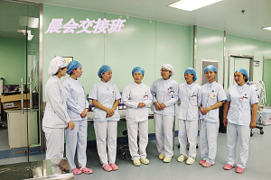 當(dāng)然,護(hù)理工作并非一帆風(fēng)順。眾所周知,ICU收治的都是重癥患者,患者大多數(shù)都有精神障礙,譫妄、昏迷、煩躁不安等狀況很常見(jiàn),這就需要護(hù)士們充滿耐心和愛(ài)心。張衛(wèi)華以實(shí)際行動(dòng)詮釋人間大愛(ài)。2014年8月,科室里來(lái)了一名Ⅱ級(jí)肝性腦病的男性患者,已經(jīng)精神錯(cuò)亂且不認(rèn)人,行為非常危險(xiǎn)。由于該病不能使用鎮(zhèn)靜藥物,當(dāng)責(zé)任護(hù)士靠近患者時(shí),患者拿起床頭柜上的一個(gè)玻璃瓶向護(hù)士砸去。作為護(hù)士長(zhǎng)的張衛(wèi)華見(jiàn)此情景,臨危不懼,用自己的身軀保護(hù)責(zé)任護(hù)士。只聽(tīng)見(jiàn)啪的一聲,鮮血順著她的臉頰流了下來(lái),可她還是慢慢走向那名患者,輕聲向他解釋情況以安撫其情緒?;颊叩那榫w漸漸地穩(wěn)定下來(lái),她才去處理傷口,并輕松地說(shuō):“只要沒(méi)傷著病人就好?!庇幸淮?,科室里來(lái)了一名心梗住院的老人,老人的孩子都在外地,得知老人生病住院也沒(méi)趕回來(lái)照顧,甚至連一句問(wèn)候都沒(méi)有。老人除了要忍受著病痛的折磨,還要忍受對(duì)孩子們的思念。張衛(wèi)華見(jiàn)此情景,非常心疼,為安慰老人,上班期間她都會(huì)去陪老人聊天,哄老人開(kāi)心。老人吵著不舒服的時(shí)候,張衛(wèi)華用藥緩解,同時(shí)耐心安撫老人。晚上老人因?yàn)楹⒆拥氖虑椋瑫?huì)像一個(gè)小孩兒一樣哭泣不止,張衛(wèi)華心疼地陪在老人身邊,一遍又一遍地安慰說(shuō):“別害怕,我在您身邊,我就是您的女兒?!?/P>